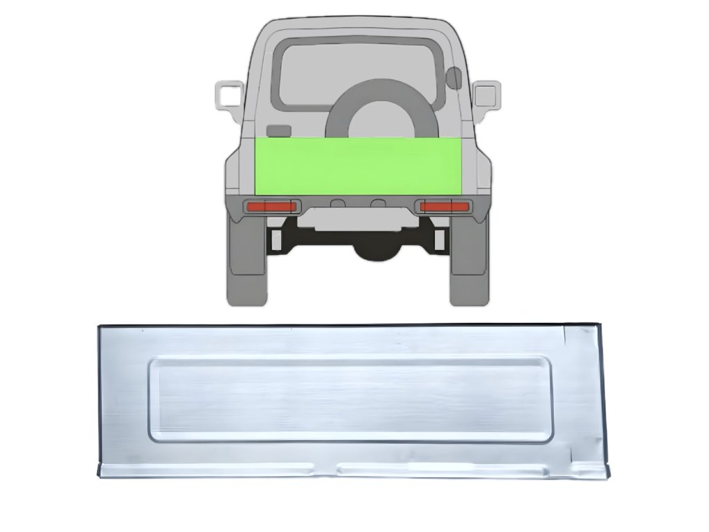 Model: Suzuki Samurai Rok výroby: 1981-2004 Popis: Opravný plech zadních dvěří , ,vysoce kvalitní ocel, Certifikovaná kvalita, OE: 8974Doplňkové parametry