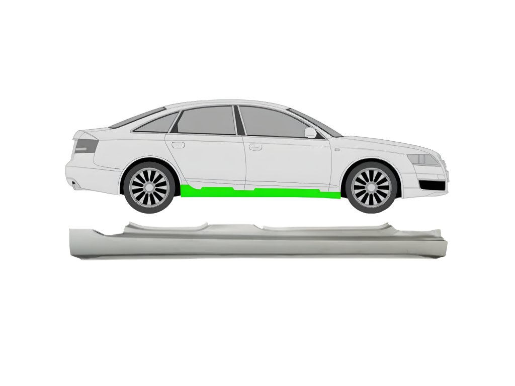 Model: Audi A6 C5 . Rok výroby: 1997-2004. POPIS: Opravný plech prahu, Strana Pravá, vysoce kvalitní ocel, Certifikovaná kvalitaDoplňkové parametry