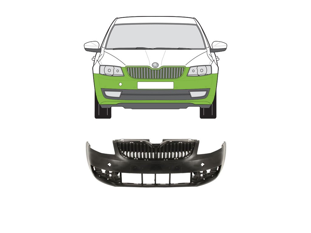 Přední nárazník ŠKODA OCTAVIA 3 Před Facelift - Rok výroby 2013-2017 - Nárazník je dodávaný včetně masky. Certifikovaná kvalita , OEM ČÍSLO 5E0807221 A , 5E0807221.