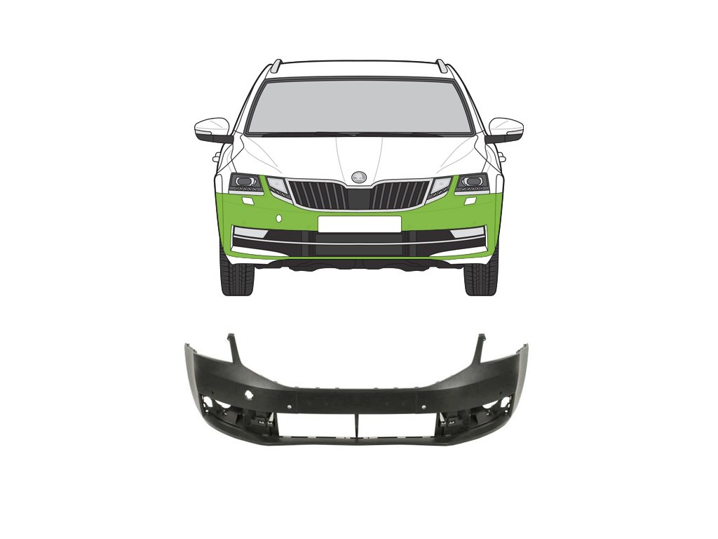 Přední nárazník ŠKODA OCTAVIA 3 Facelift - Rok výroby 2017-2020 - Možné dodat s dírami na ostřikovače, parkovací senzory či bez. Certifikovaná kvalita , OEM ČÍSLO: 5E0807221N , 88071839202